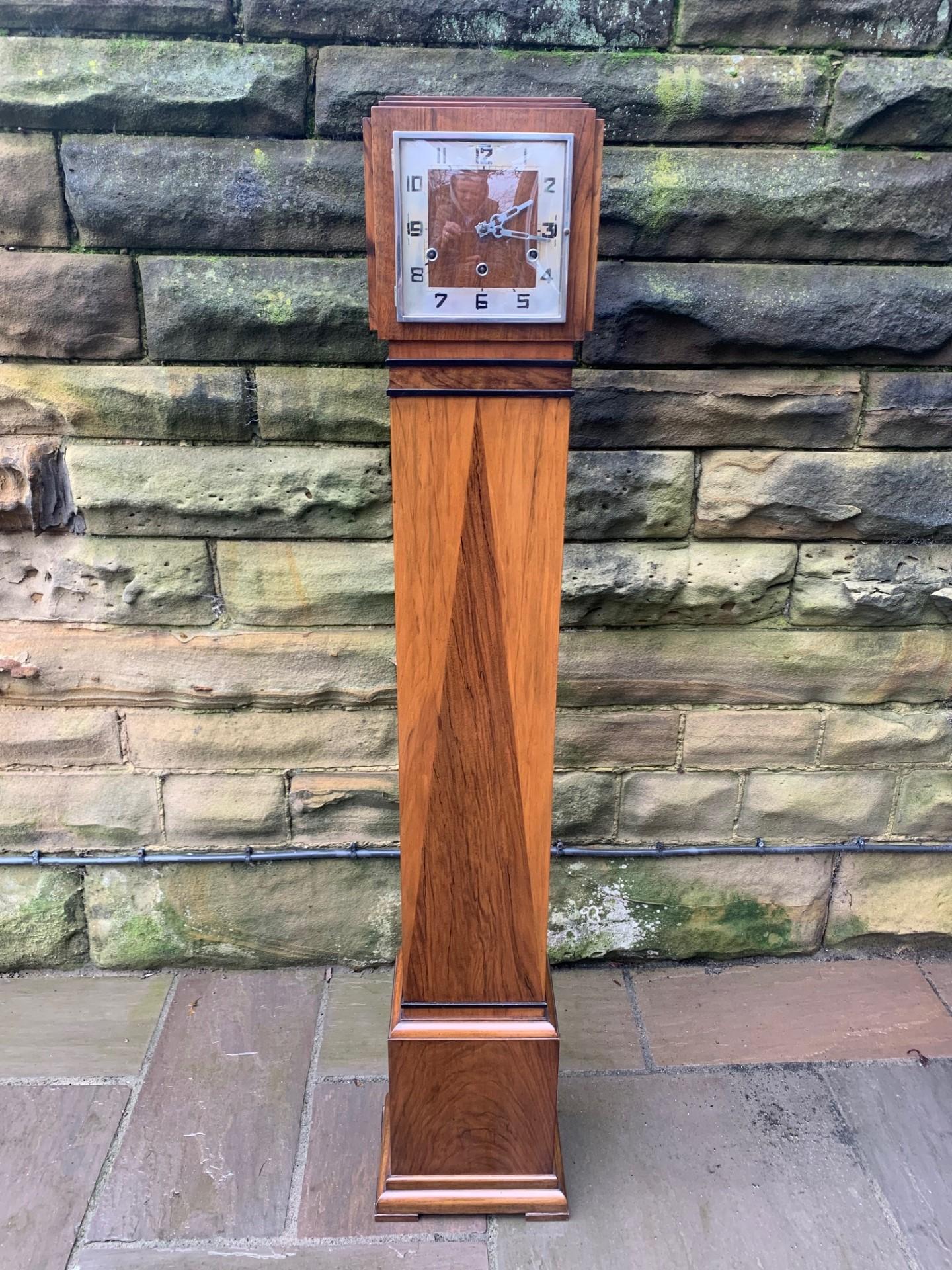 Art Deco Figured Walnut Granddaughter Clock