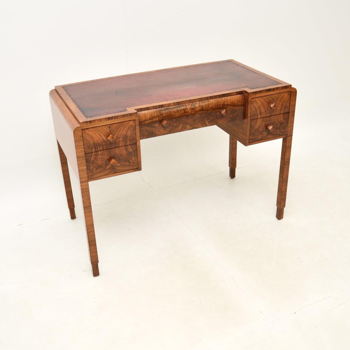 Art Deco Figured Walnut Leather Top Desk (1 of 10)