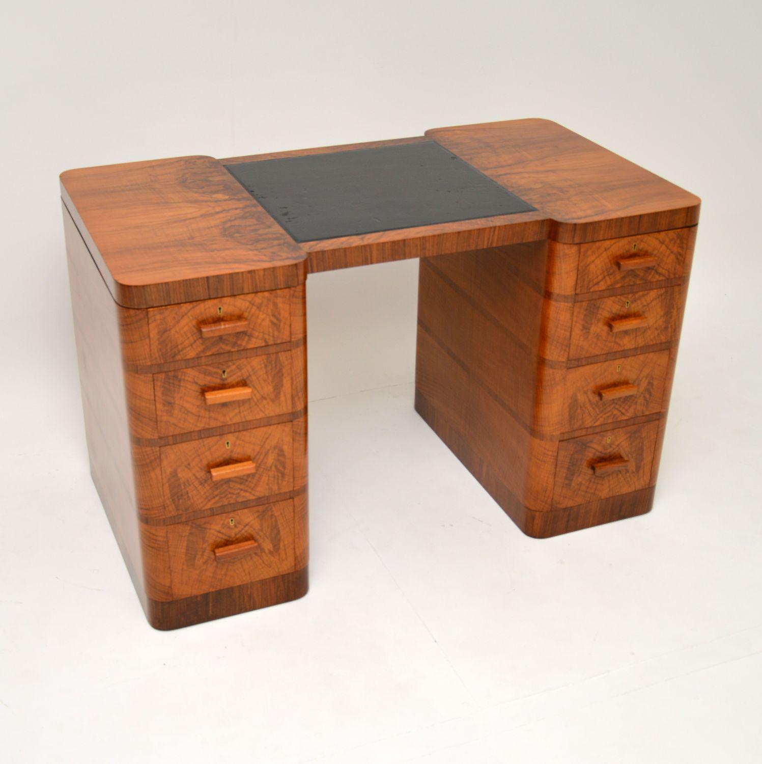 Art Deco Figured Walnut Partners Desk by Maple & Co