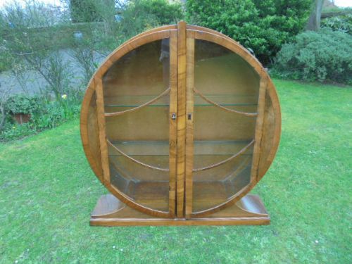 Art Deco Figured Walnut Round Display Cabinet c.1930