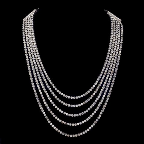 Art Deco Five Strand Paste Stone Necklace Silver c.1920