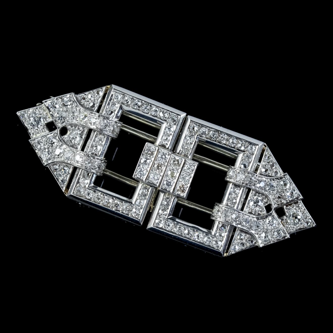 Art Deco French Diamond Double Clip Brooch 18ct Gold 3ct Diamonds Boxed c.1930
