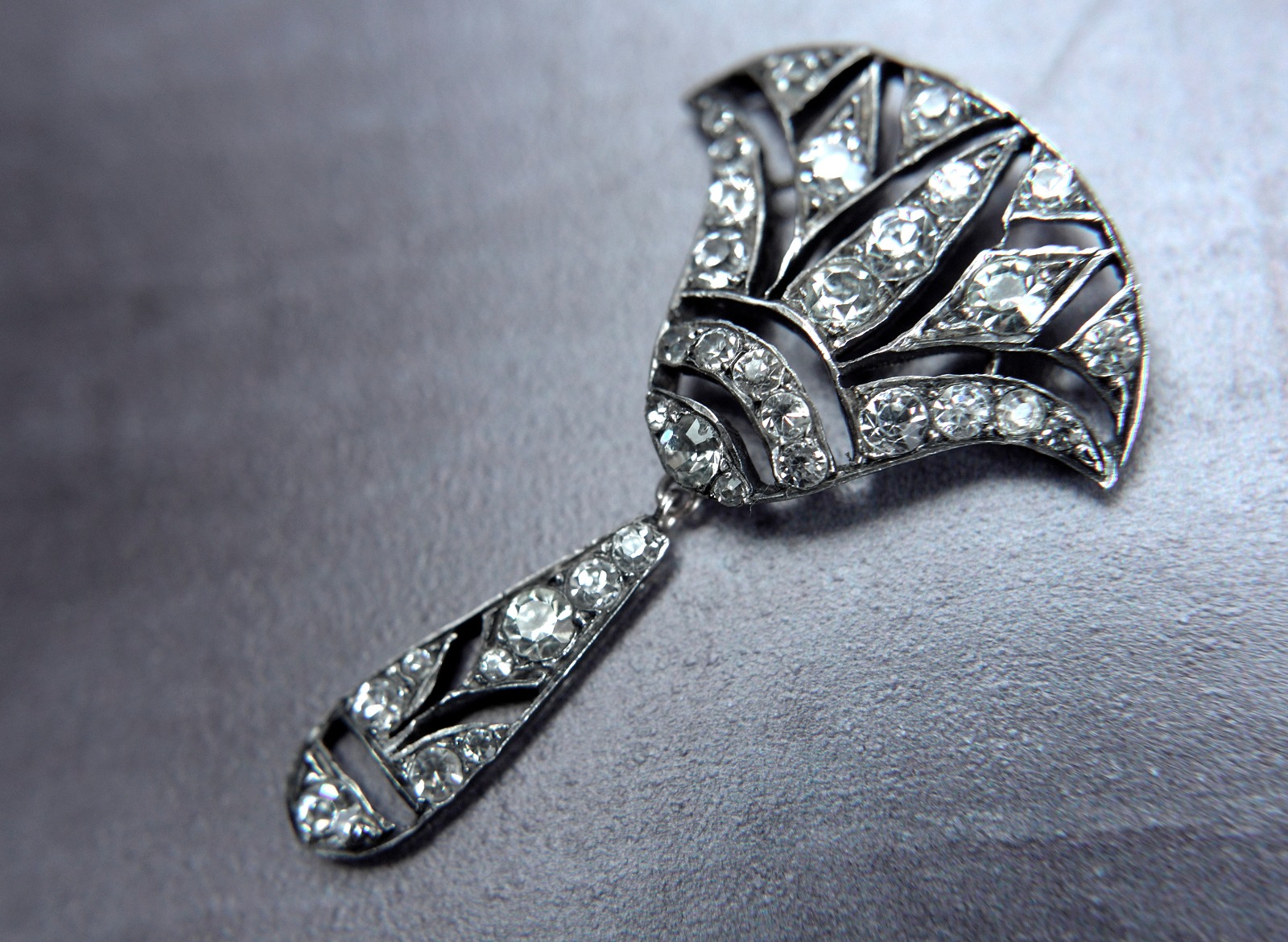 Art Deco French Egyptian Revival Pendant Drop, Silver & Fine Diamond Paste Stones c.1925
