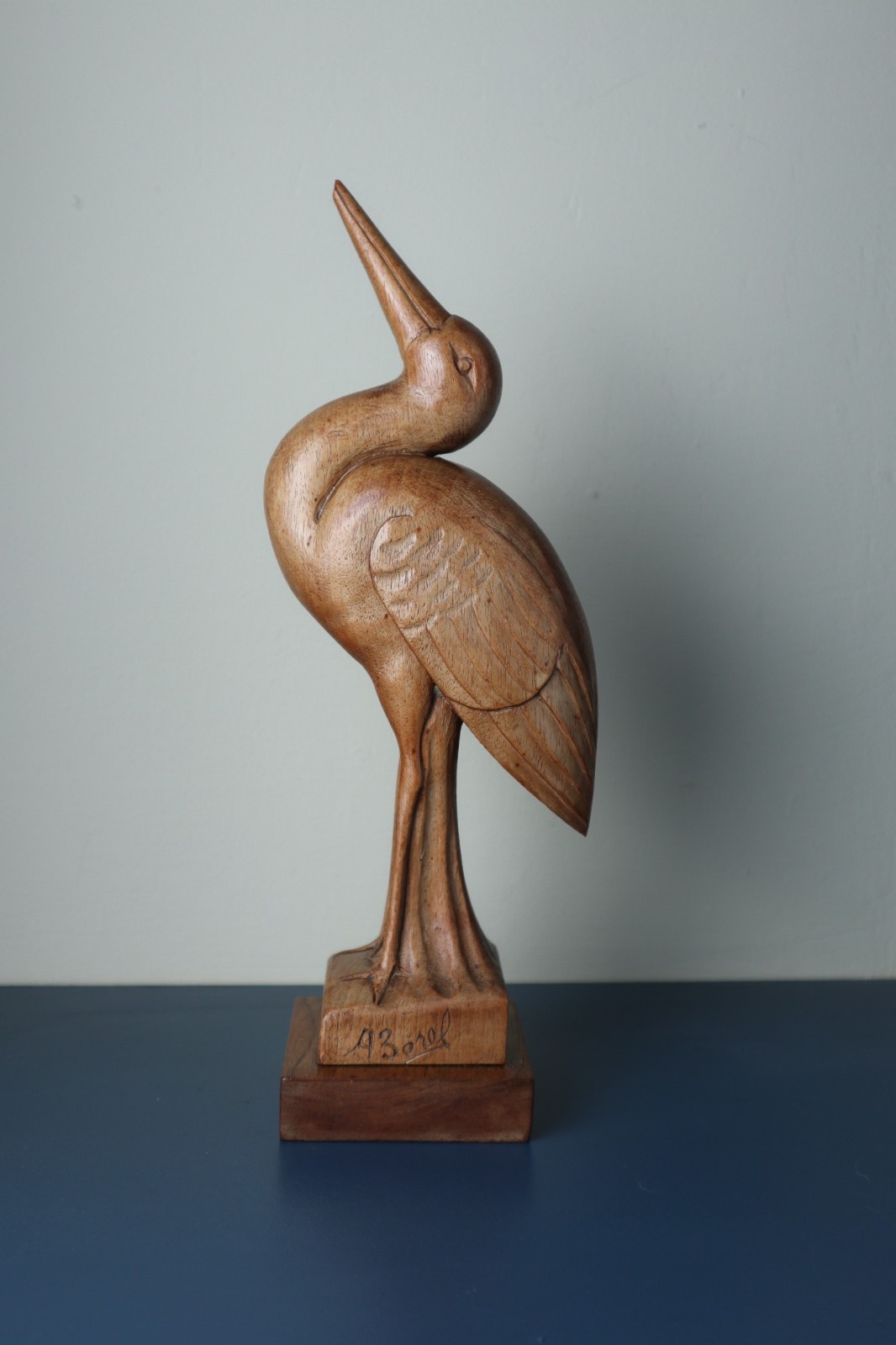 Art Deco French Stork Sculpture Carved in Oak by a Borel C.1935