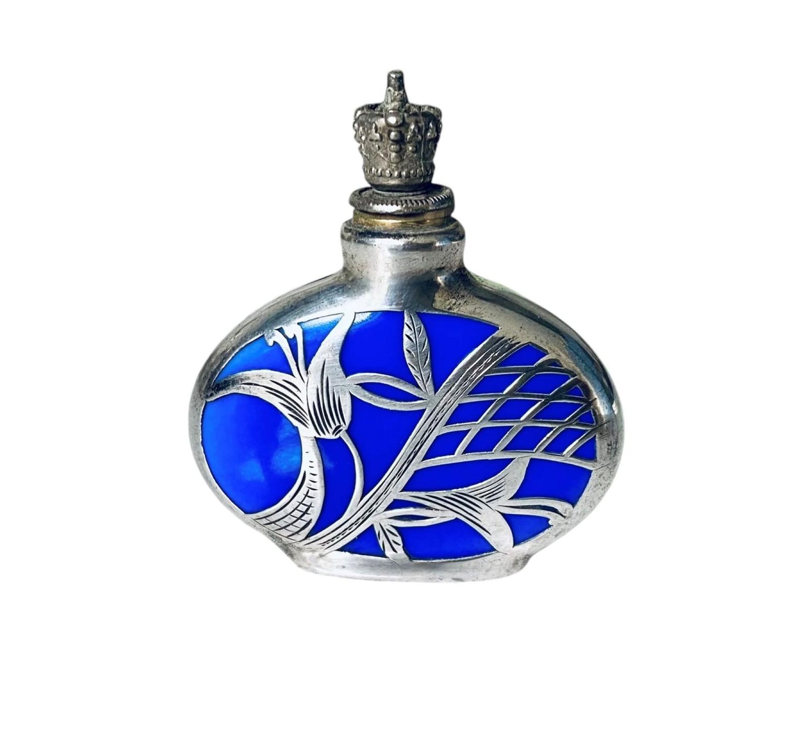 Art Deco German Crown Top Perfume Scent Bottle Enamel & Silver Overlay c.1930