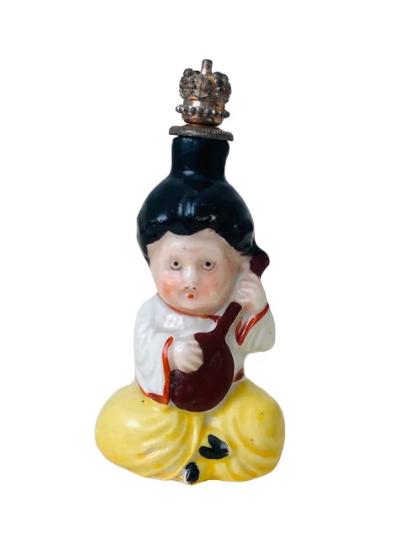Art Deco German Porcelain Figural Arab Boy Crown Top Perfume Scent Bottle Circa 1930