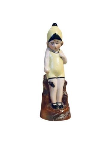 Art Deco German Porcelain Little Girl with Bug Flower Frog / Vase / Hat Pin Holder c.1920