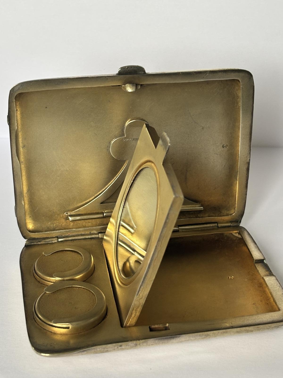 Art Deco German Silver Gilt Sovereign Card Compact Combination Case C1920