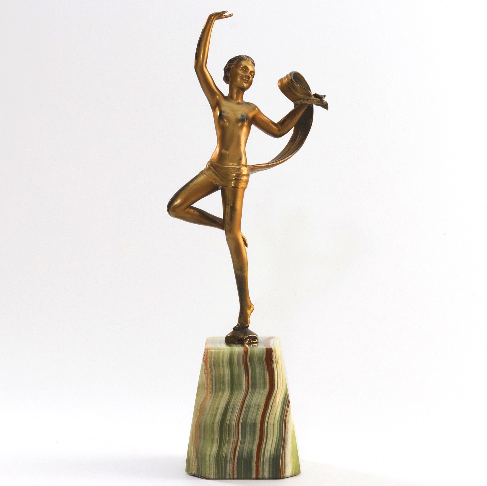 Art Deco Gilt Cold-Painted Spelter Figure of a Scarf Dancer c.1930