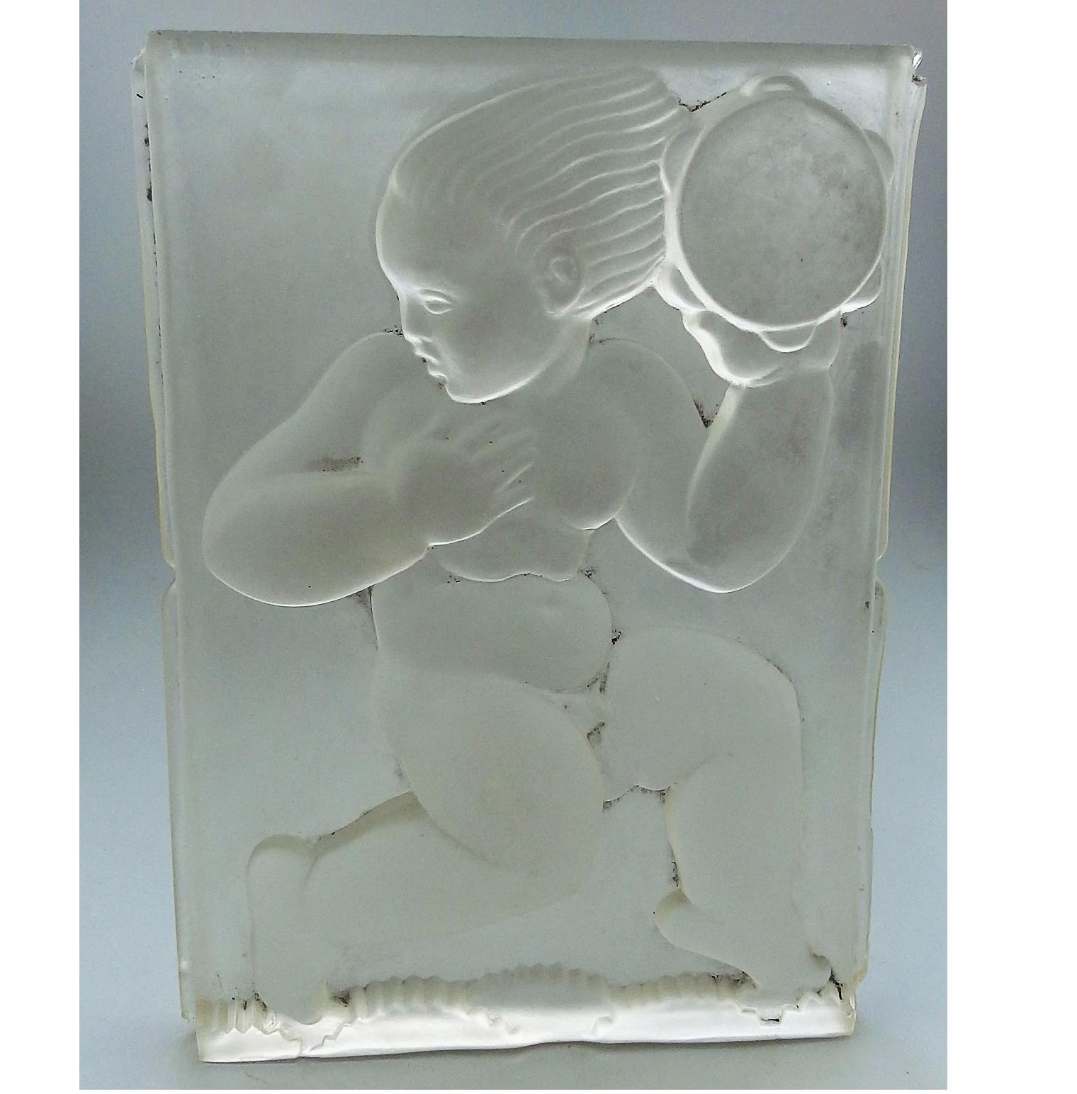 Art Deco Glass Cherub Panel Signed AH c.1920-1930s