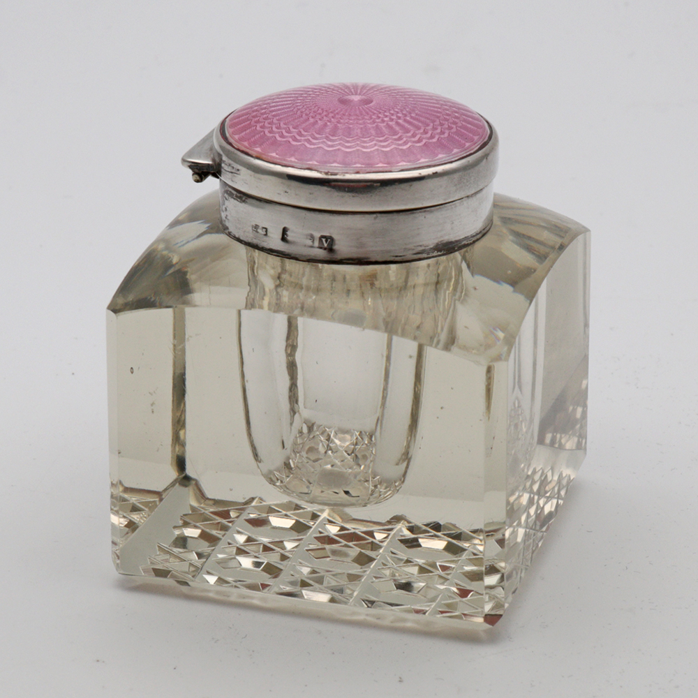 Art Deco Glass & Enamel Inkwell