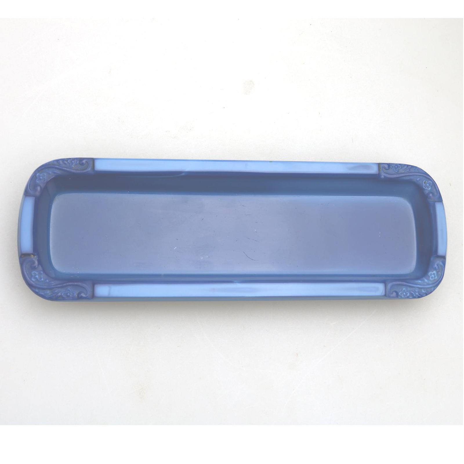 Art Deco Glass Pen Rest Trinket Tray Lapis Lazuli Schlevogt Hoffman Ingrid Rose 1930