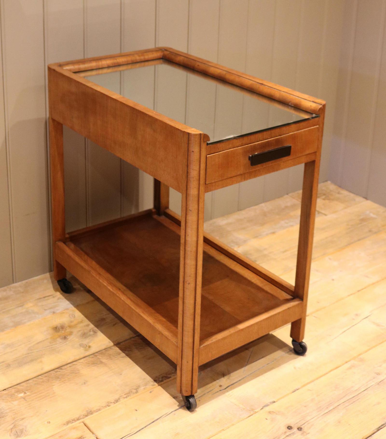 Art Deco Glass Topped Walnut Trolley