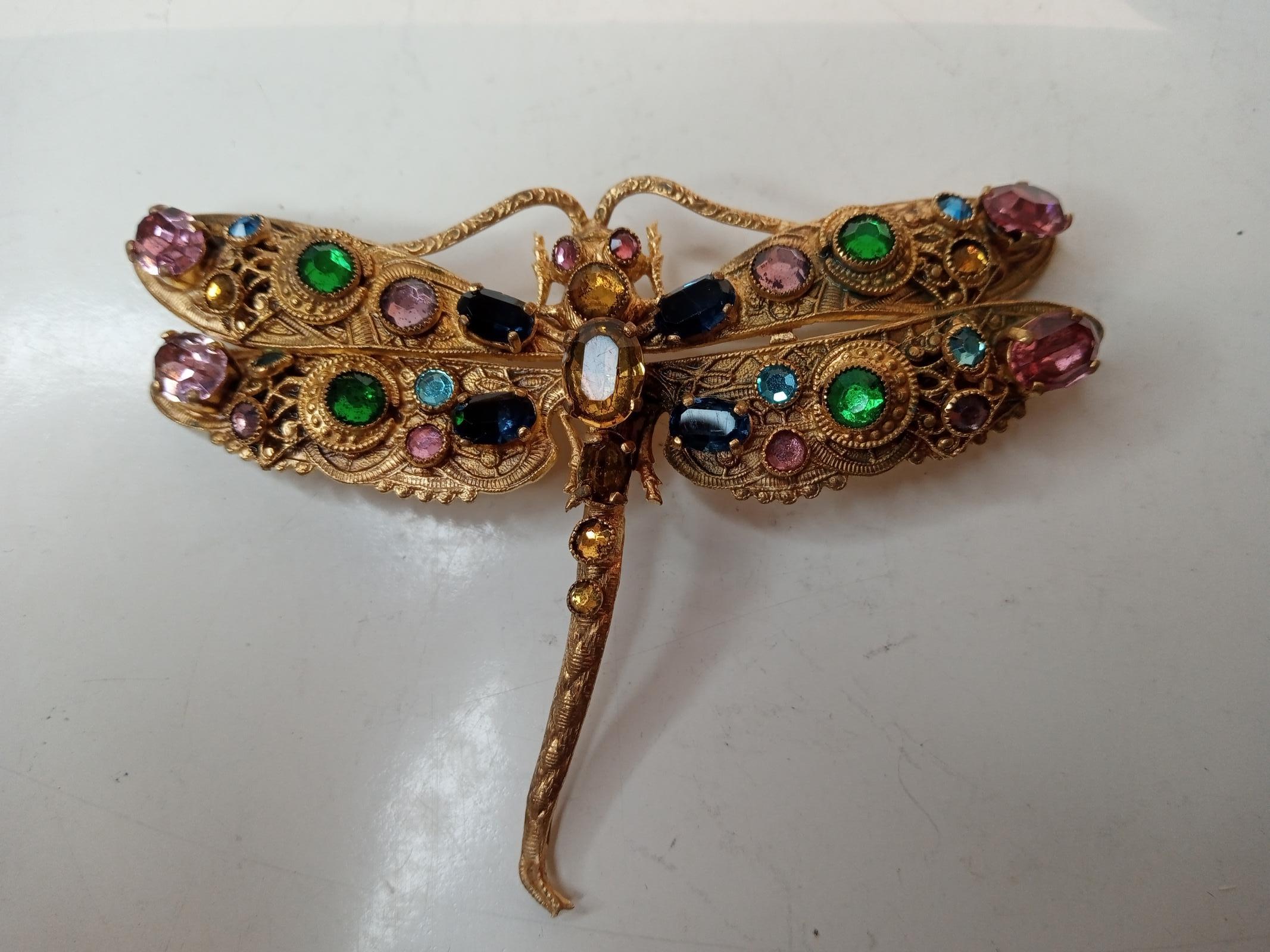 Art Deco Gold Coloured Dragonfly Brooch - Neiger Brothers