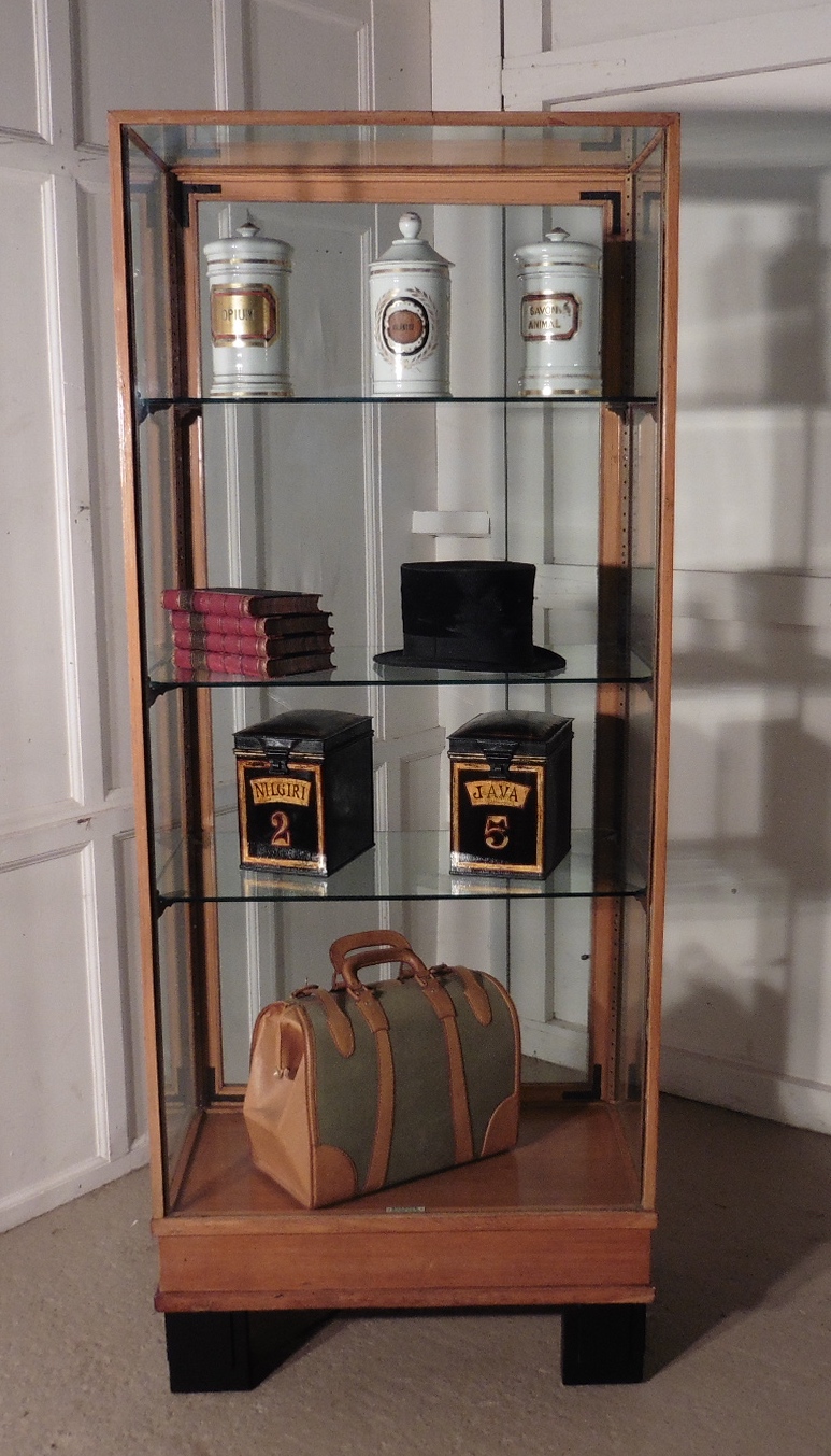 Art Deco Golden Oak Vitrine / Tall Shop Display Cabinet