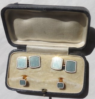 Art Deco Guilloche-Enamel Cufflink & Stud Set (1 of 9)