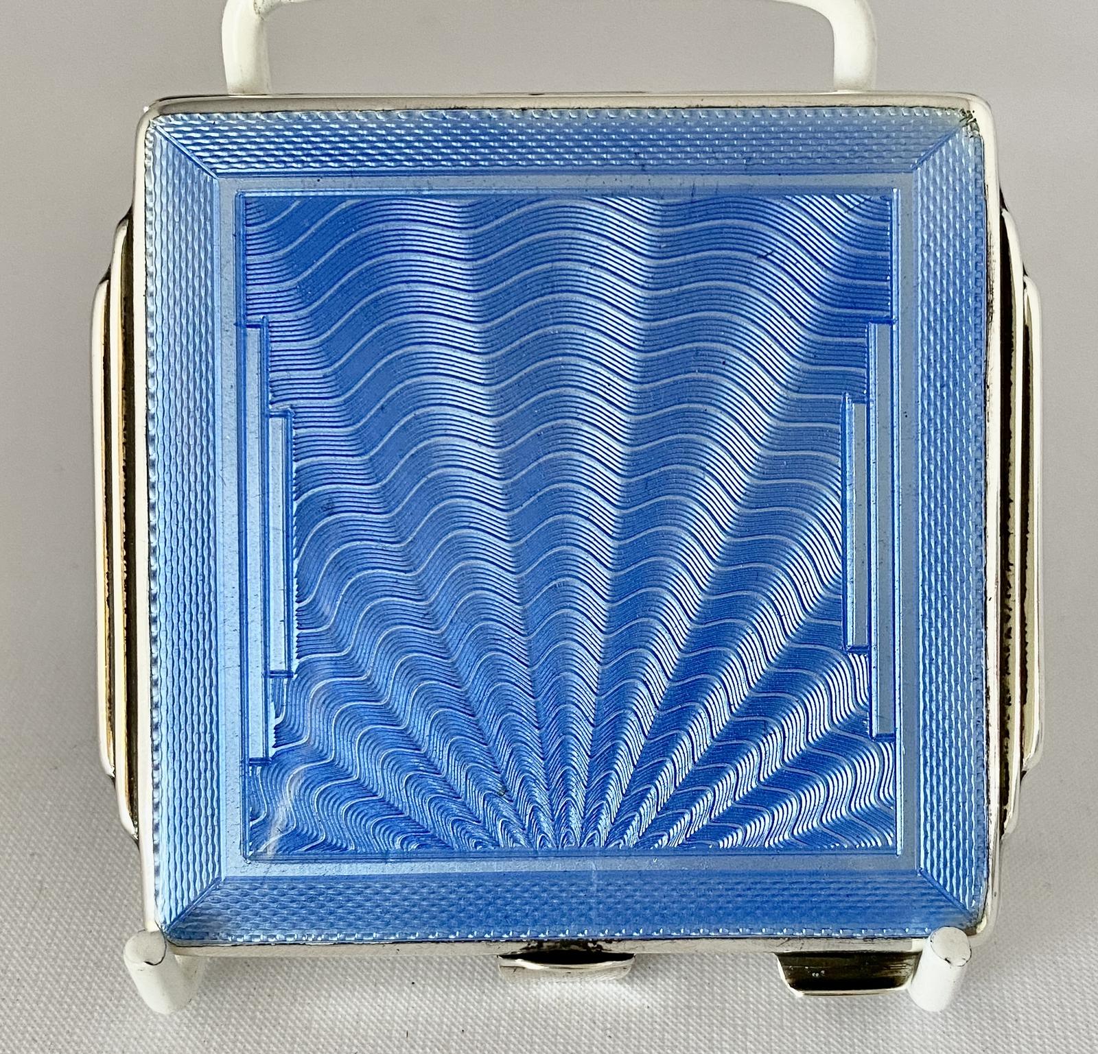 Art Deco Guilloche Enamel on Silver Compact. Birmingham 1937