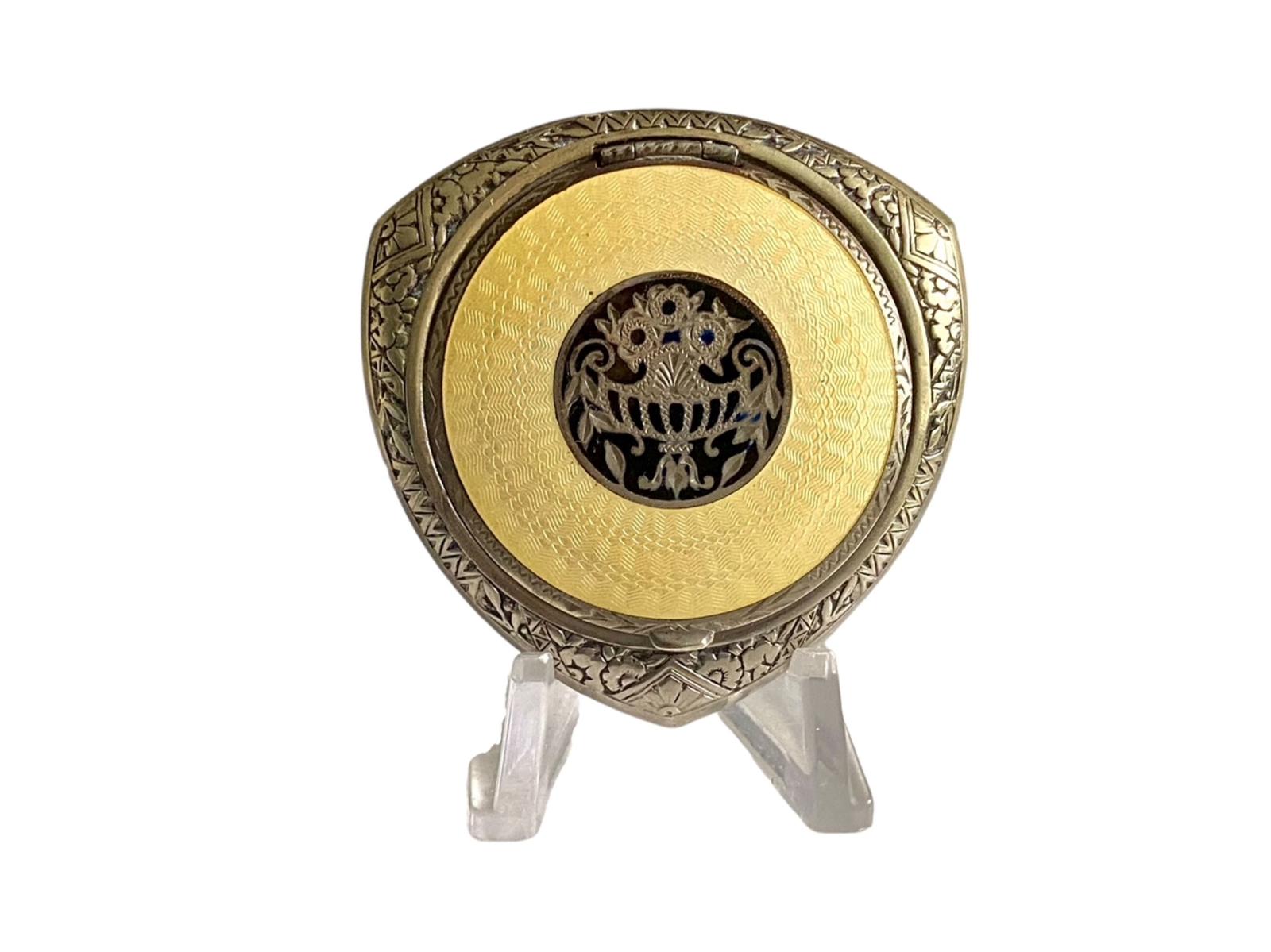 Art Deco Guilloche Enamel Silver Basket Rouge & Powder Compact Vanity Case Circa 1930