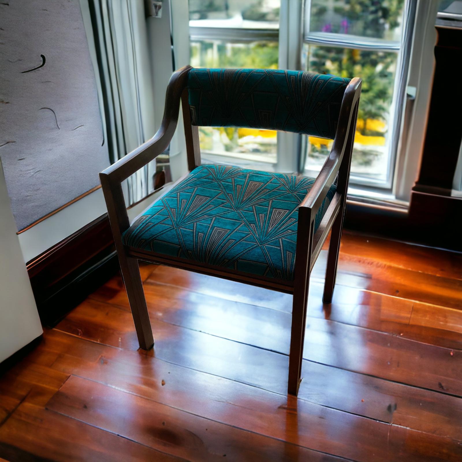 Art Deco Hall Chair Finished in Teal Blue 'Great Gatsby' Style Upholstery