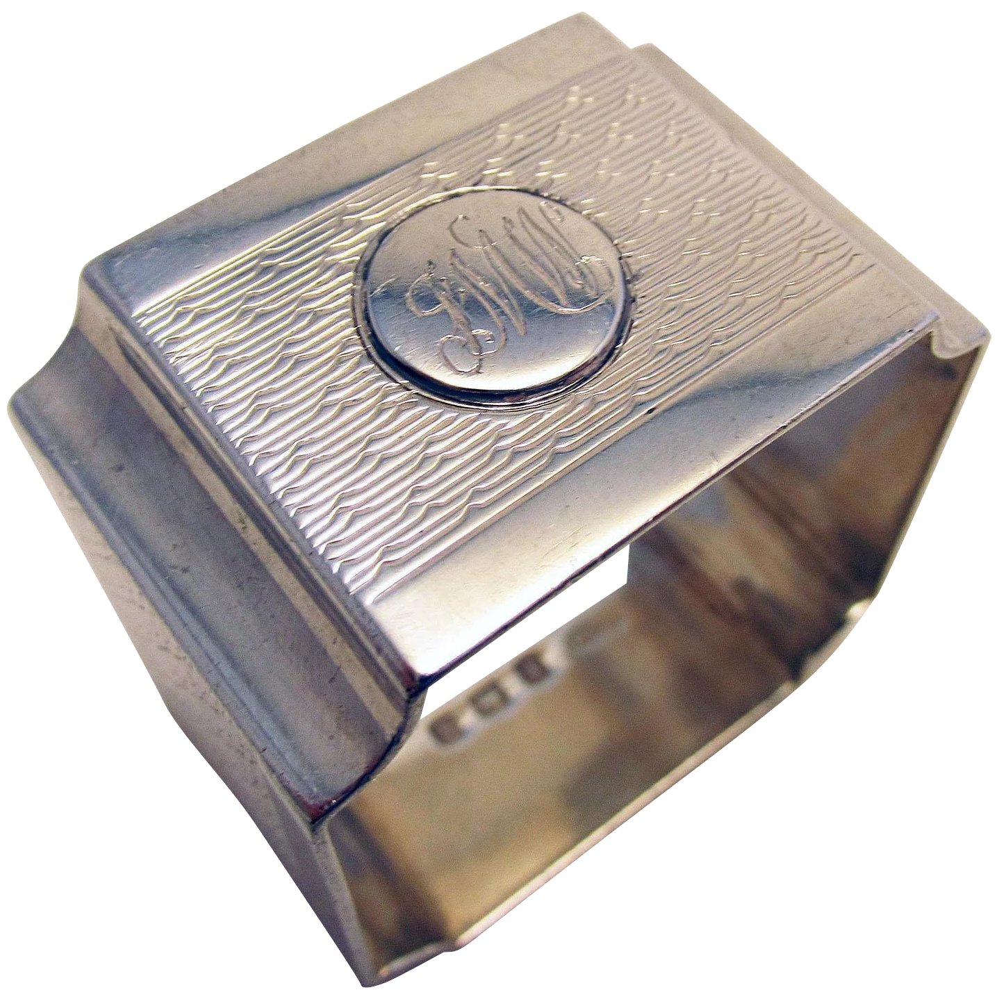Art Deco Heavy 34.6G Hallmarked Solid Sterling Silver Square Shape Serviette Napkin Ring 1925