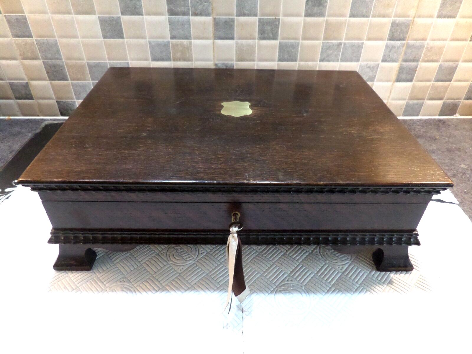 Art Deco Inlaid Solid Oak Box Ideal For Documents/ Collections - Lock & Key