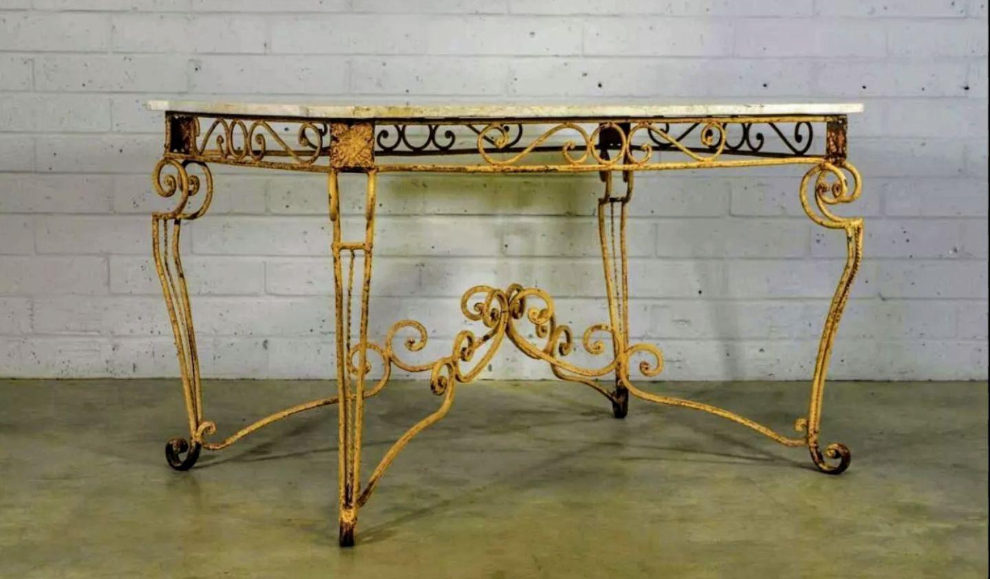 Art Deco Iron French 1930s Marble Top Table