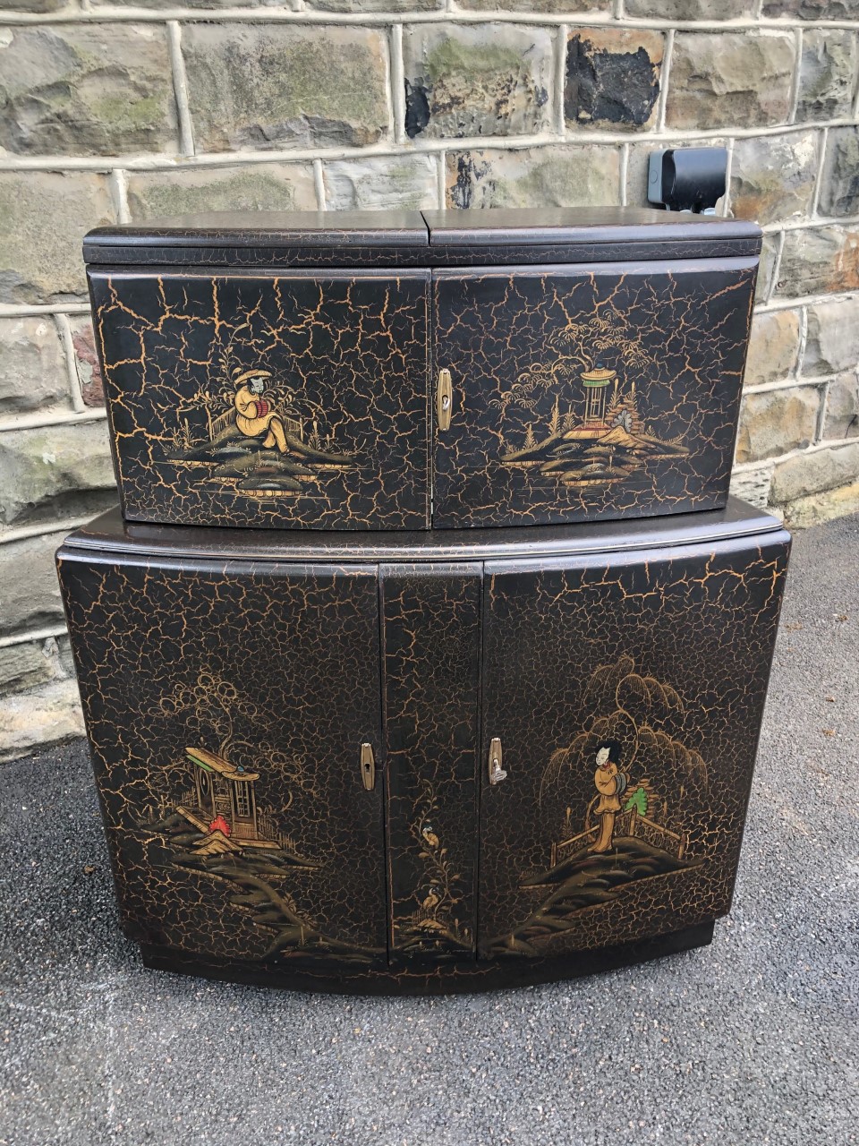 Art Deco Lacquered Chinoiserie Cocktail Bar Cabinet