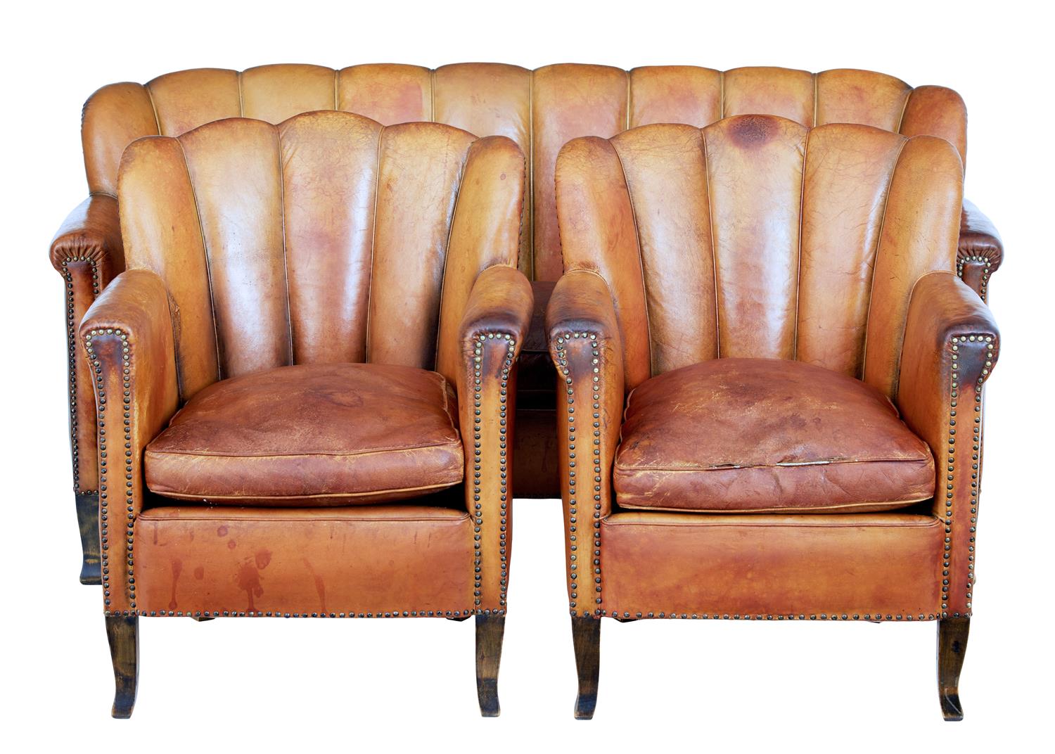 Art Deco Leather Shell Back 3 Piece Suite (1 of 1)