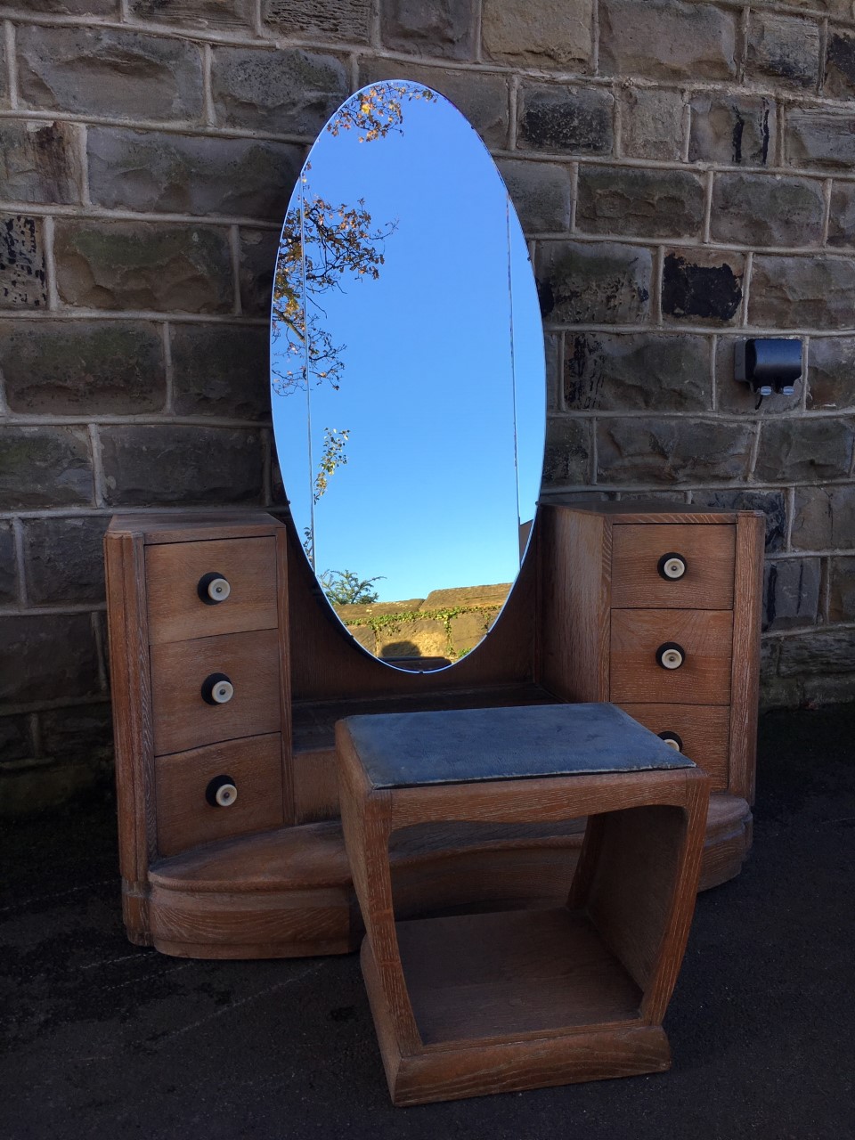Art Deco Limed Oak Dressing Table & Stool