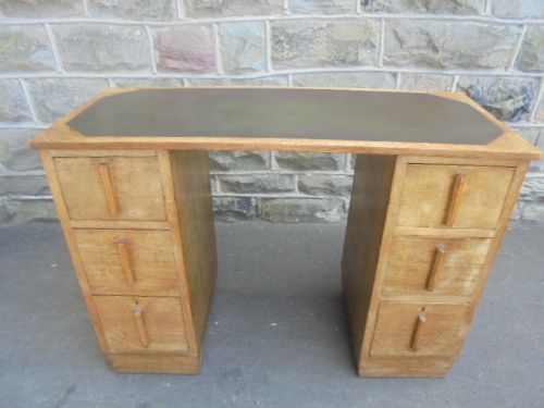 Art Deco Limed Oak Pedestal Desk / Writing Desk by Heals