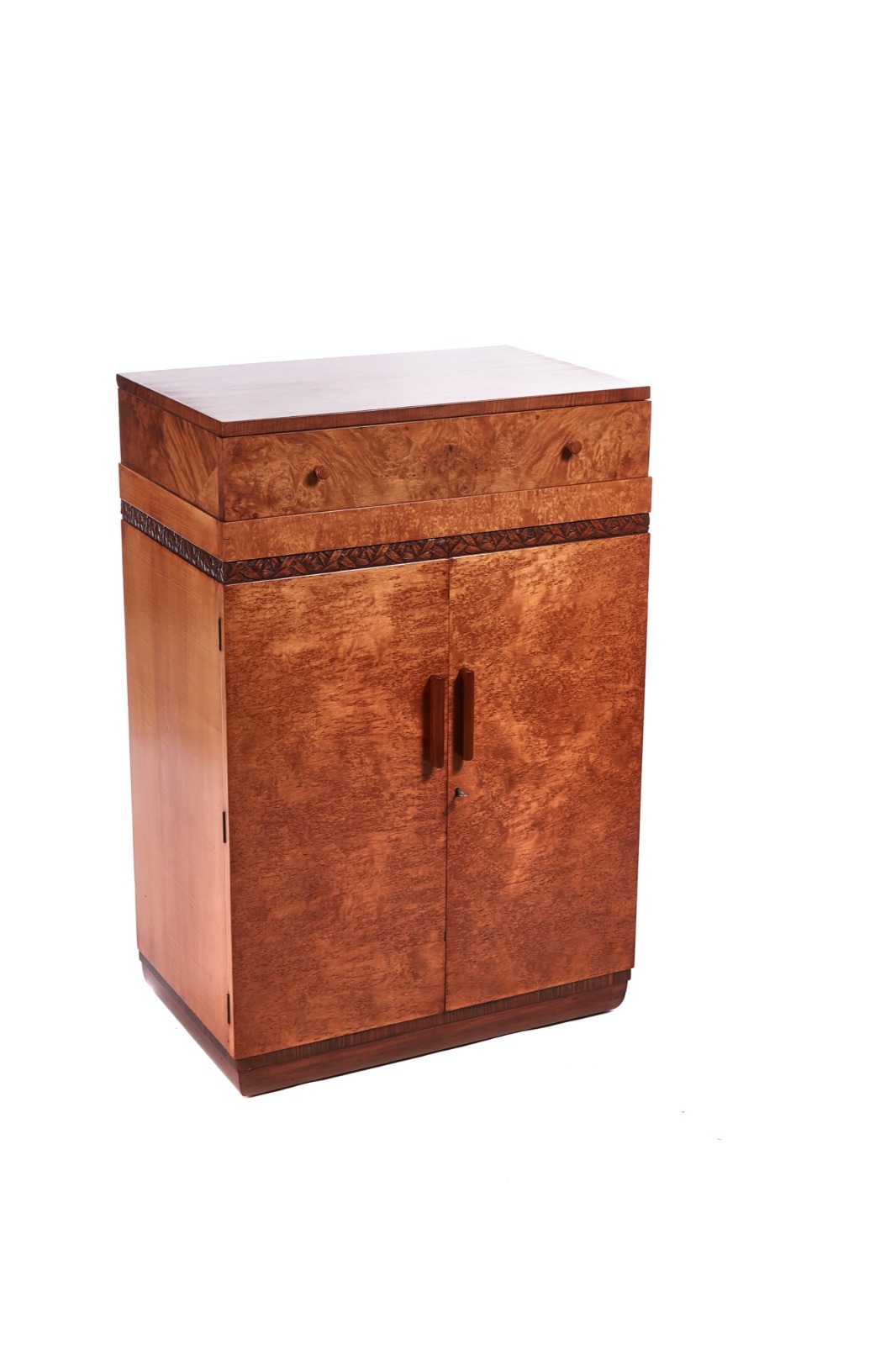 Art Deco Maple Tallboy Carved Leaf Decoration