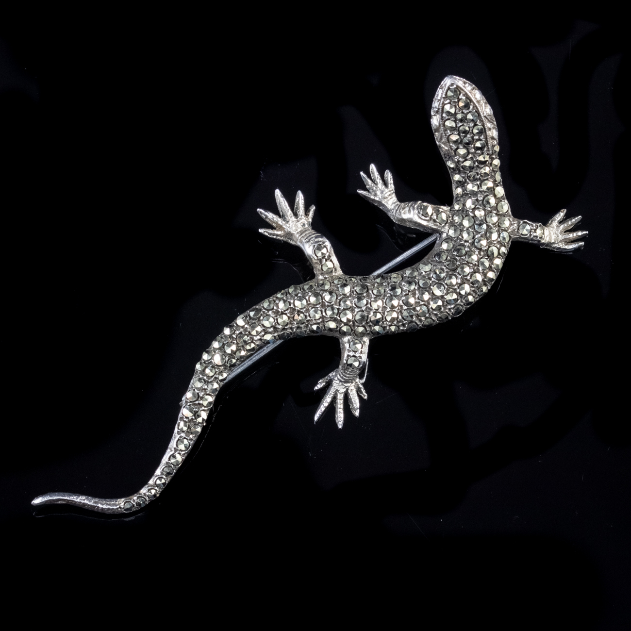 Art Deco Marcasite Salamander Brooch Sterling Silver c.1930