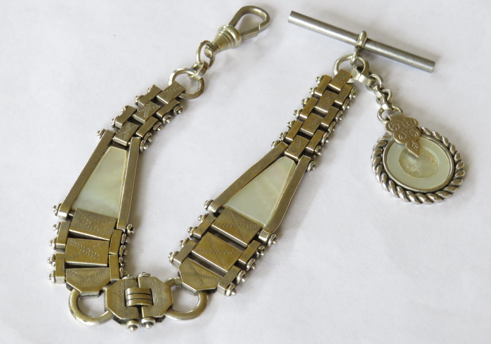 Art Deco Nickel & Mother of Pearl Watch Chain