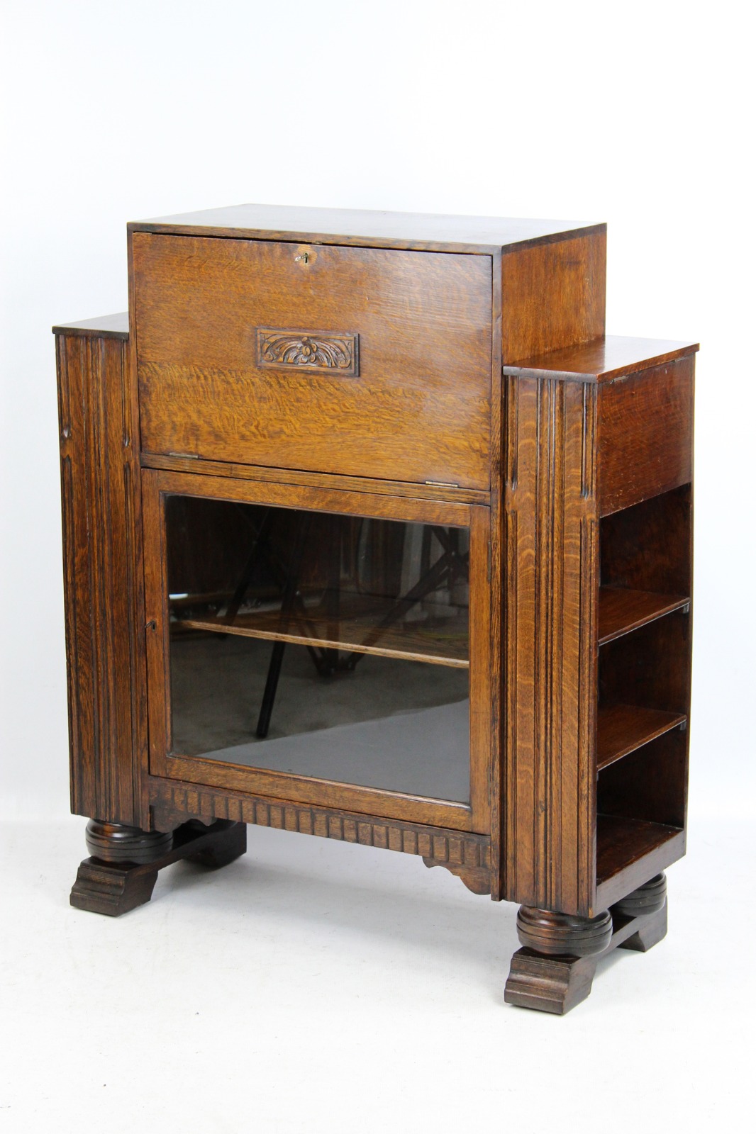 Art Deco Oak Bureau with Bookcase Sides (1 of 1)