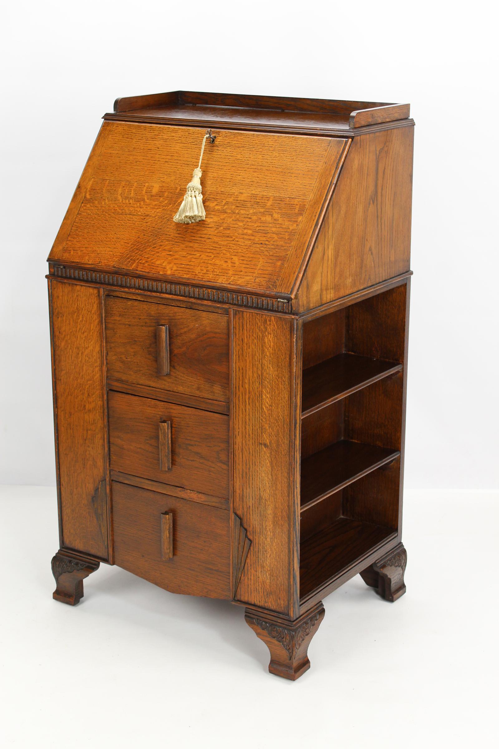 Art Deco Oak Bureau with Bookcase Sides