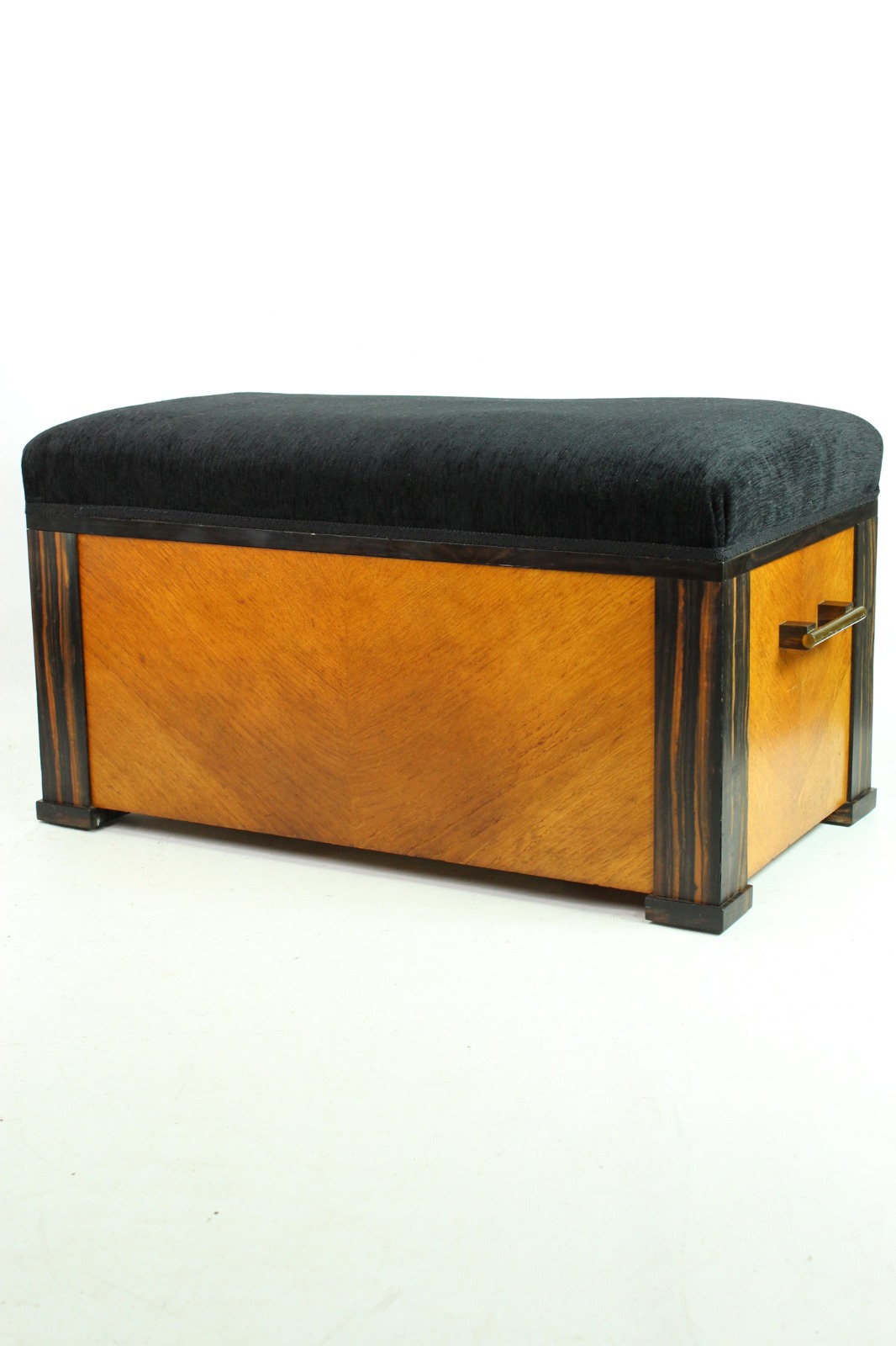 Art Deco Oak & Coromandel Wood Ottoman / Blanket Chest