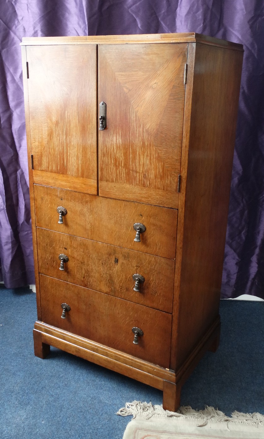 Art Deco Oak Veneered Tallboy/Linen Cupboard