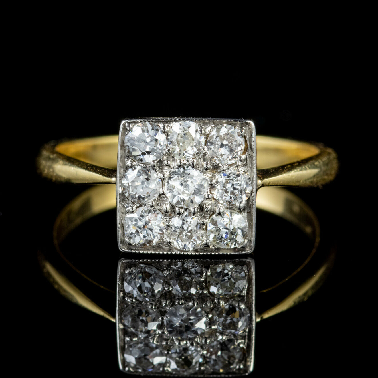 Art Deco Old Cut Diamond Cluster Ring 18ct Gold Platinum c.1920