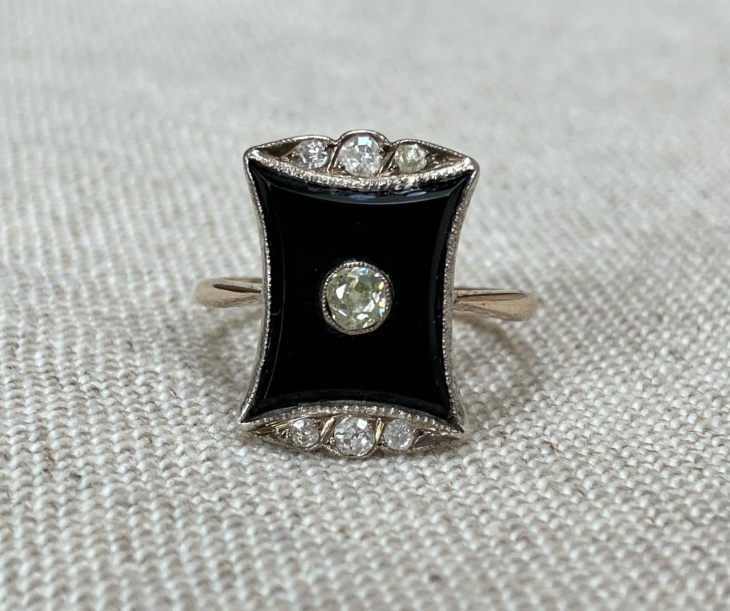Art Deco Onyx & Diamond Panel Ring - Size M
