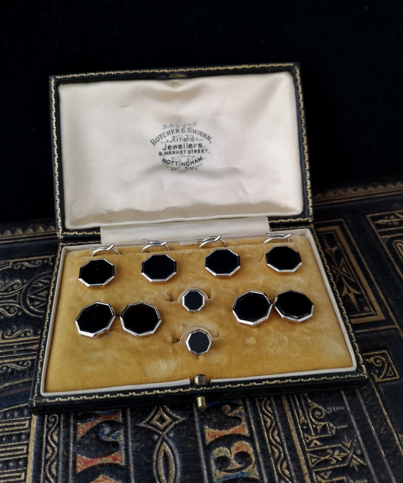 Art Deco Onyx & Gold Cufflink Set, 18ct White Gold, 9ct Gold