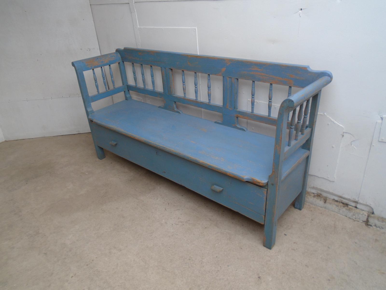 Art Deco Painted Blue Antique Pine 3 Seater Bench