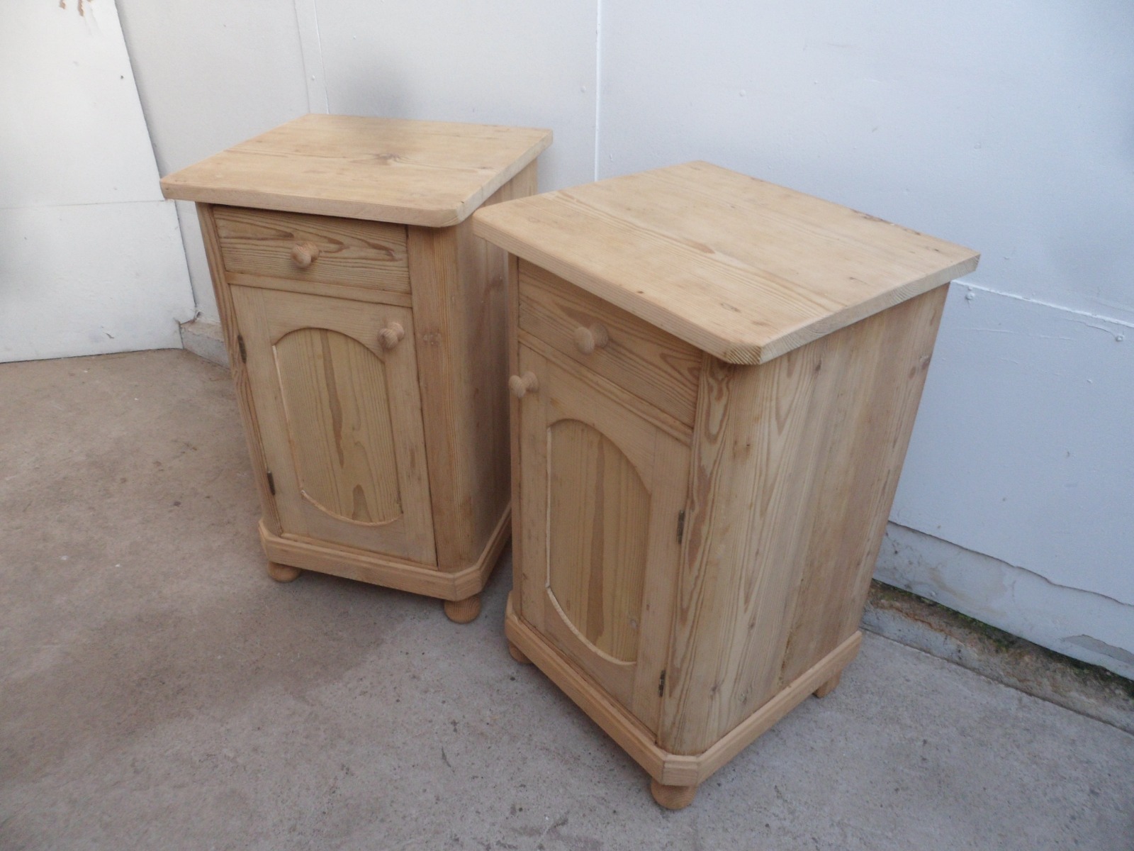 Art Deco Pair of Old Pine Oval Bedside Cabinets to wax / paint