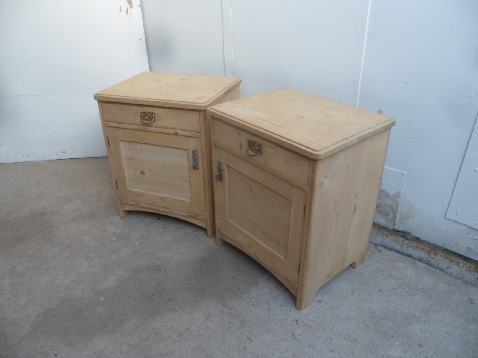 Art Deco Pair of Old Pine Rounded Bedside Cabinets to wax / paint