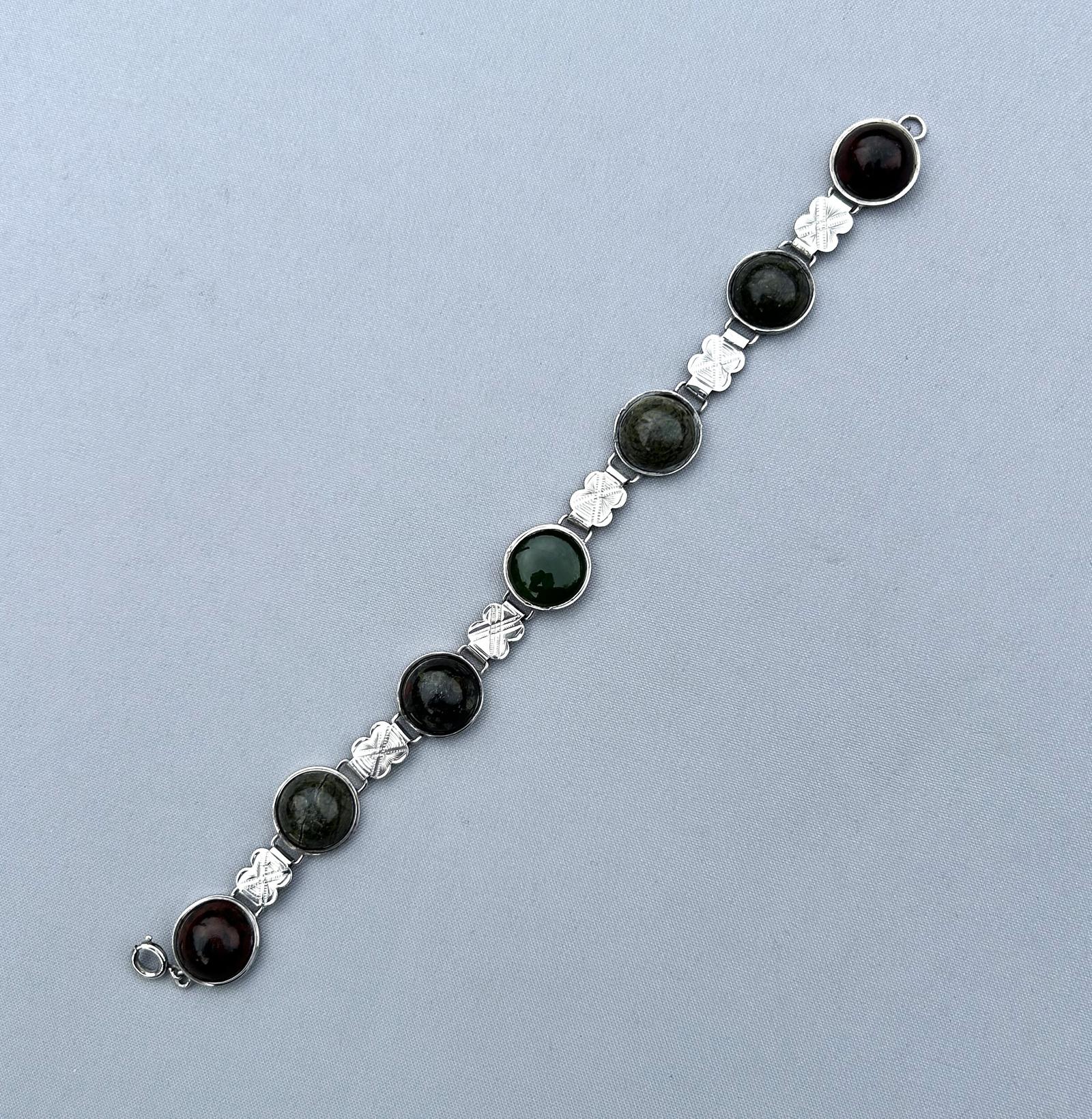 Art Deco Panel Link Silver, Agate & Jade Bracelet