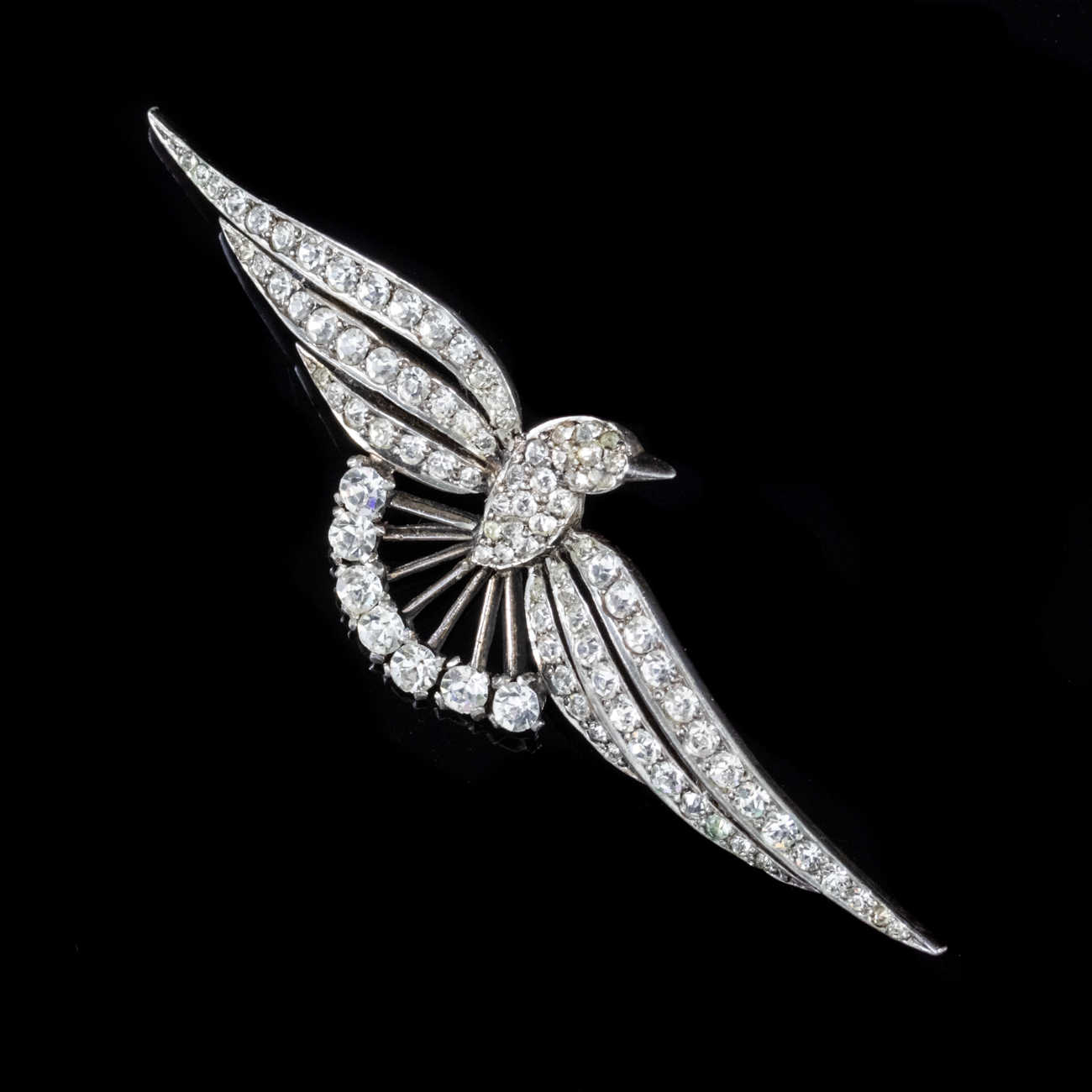 Art Deco Paste Dove Brooch Sterling Silver c.1925