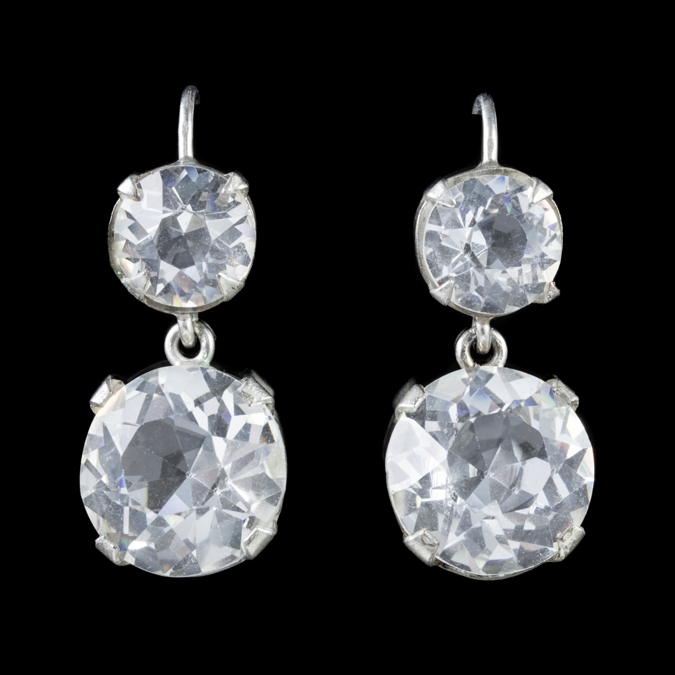 Art Deco Paste Stone Drop Earrings Sterling Silver C.1930