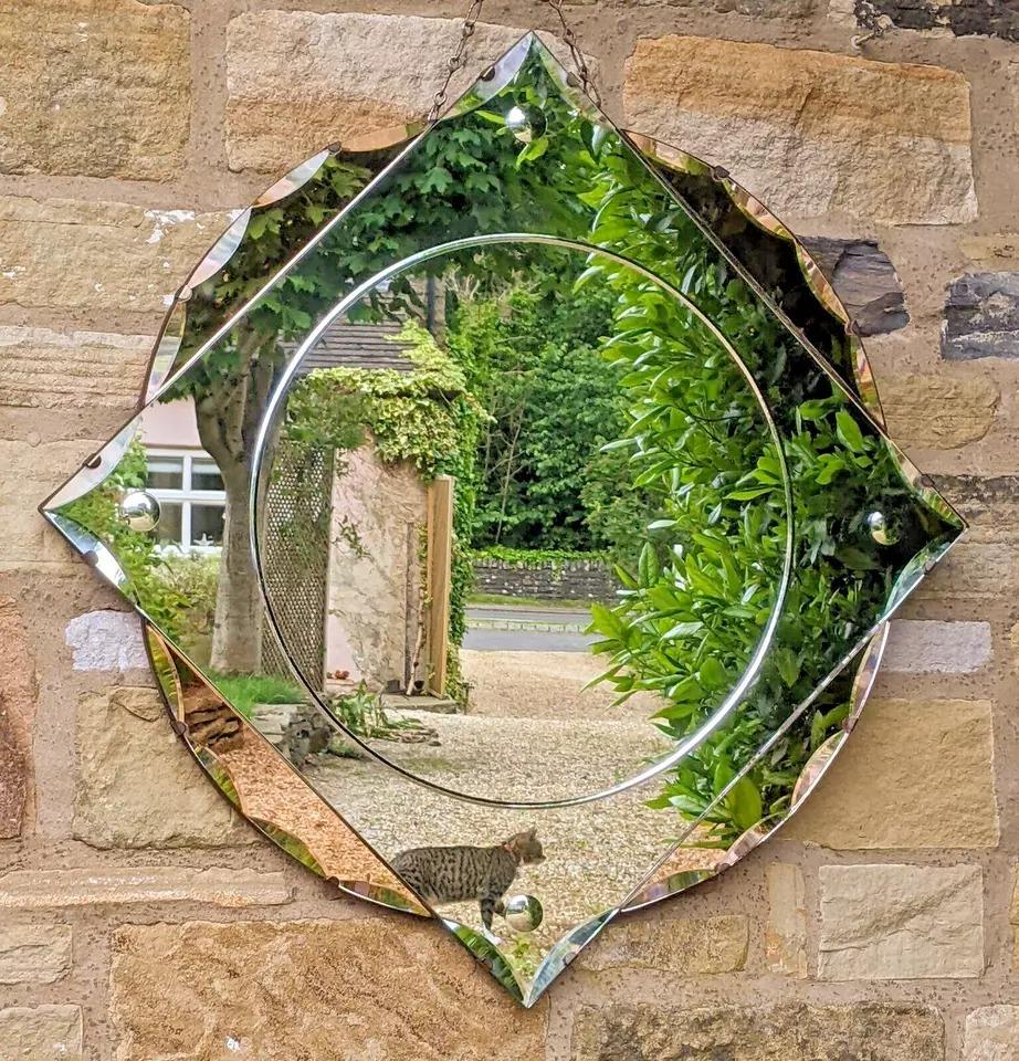 Art Deco Peach Glass Circular Mirror (1 of 7)