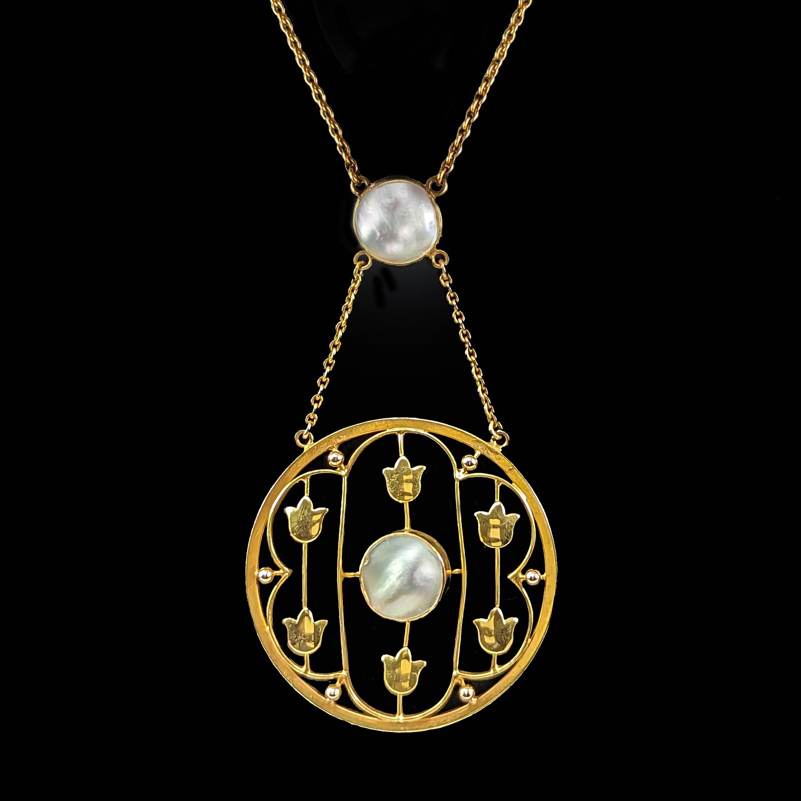 Art Deco Pearl Necklace 9ct Gold Edwardian Blister Pearl Antique Pendant Circa 1910