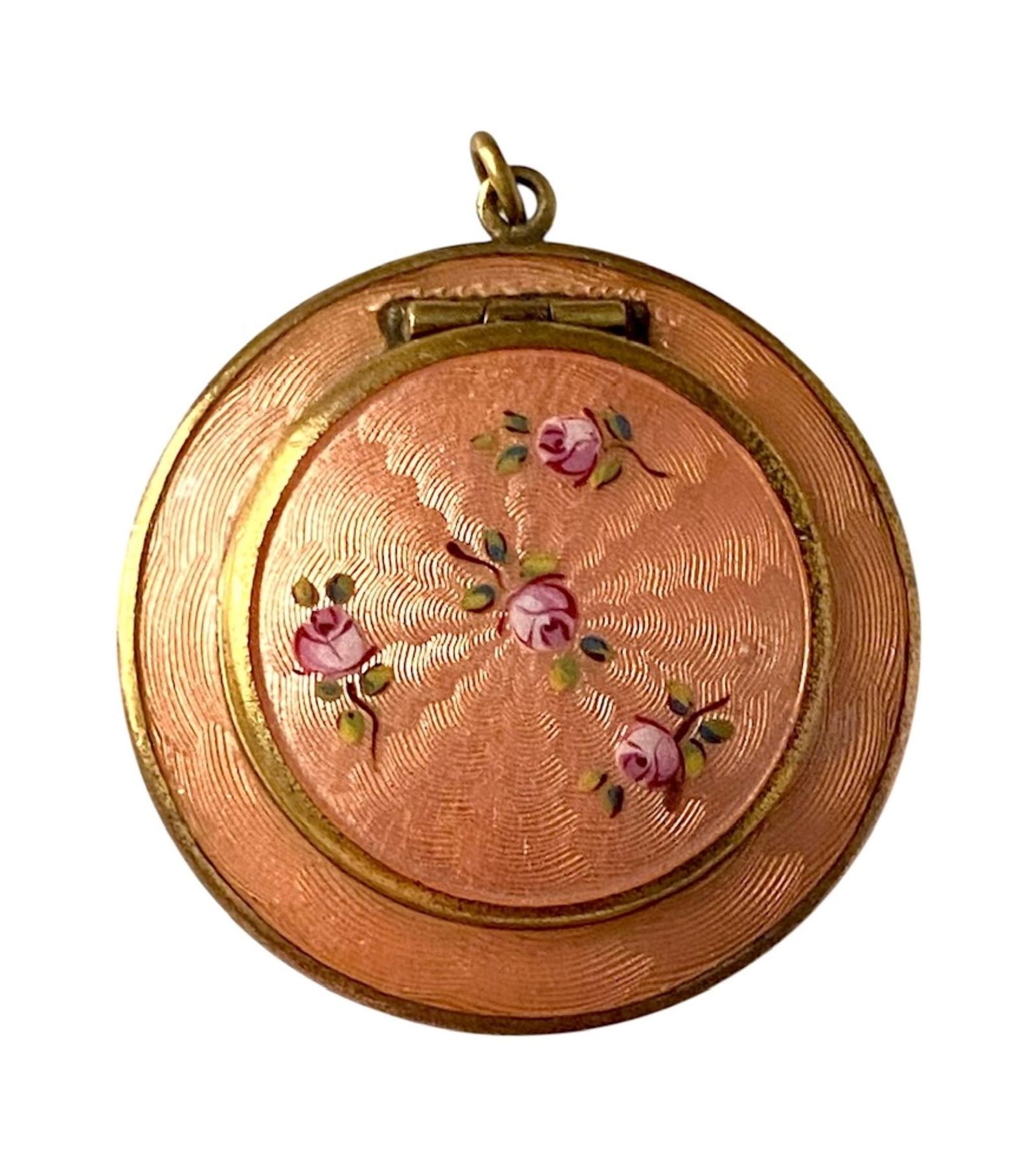 Art Deco Pendant Powder Compact Double Sided Guilloche Enamel c.1930