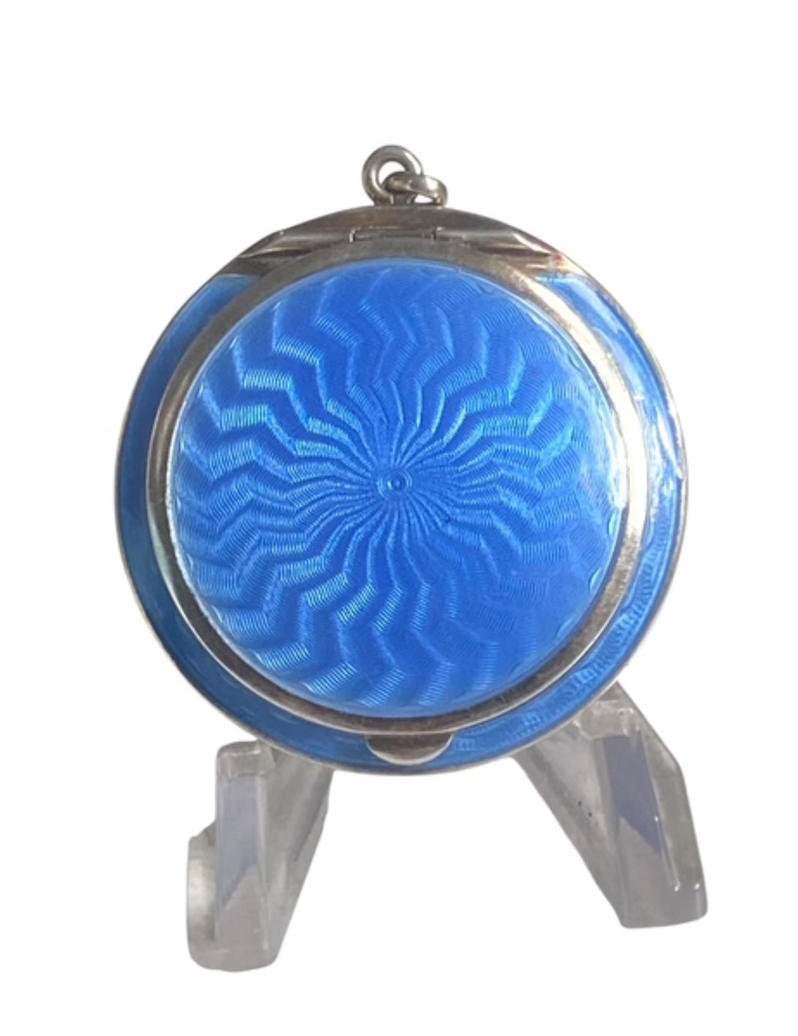 Art Deco Pendant Powder Compact Guilloche Enamel Sterling Silver London Import 1926